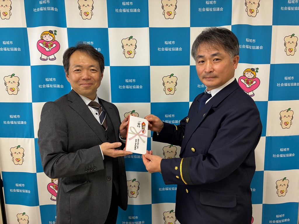 令和8年2月9日(月)に社会福祉法人稲城市社会福祉協議会へ訪問し、地域福祉の推進の支援として、当協会から川島幹雄会長に寄付金を贈呈しました。